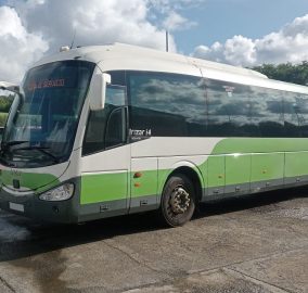 Équipement: Bus interurbain SCANIA K360 EB IRIZAR i4 13mts. 360Cv Euro6A avec boîte automatique OPTICRUISE. Sièges modèle i4 avec ceintures de sécurité homologuées. Équipé de vitres doubles, ensemble de panneaux électroniques, unité de climatisation HISPACOLD, système de chauffage par convecteurs, caméra de recul et plateforme élévatrice MASATS pour PMR avec espace pour 1 fauteuil roulant. Date d’immatriculation: 28/08/2014.