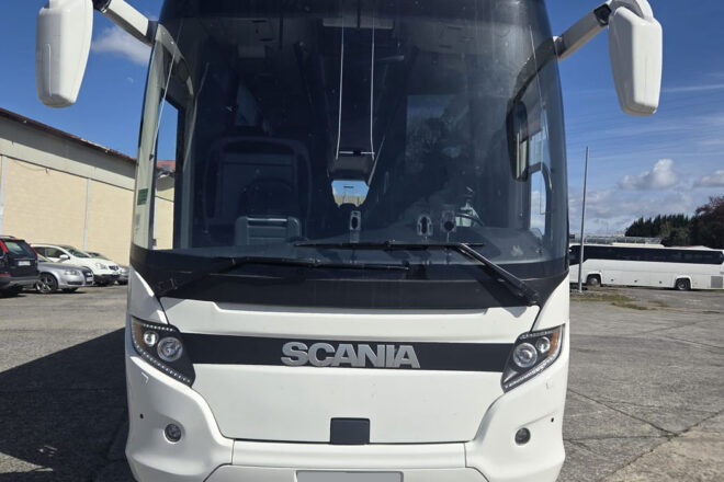 Otras características: Autocar SCANIA TOURING 13mts. 360Cv Euro6 con cambio automático OPTICRUISE. Butacas modelo KIEL con cinturones homologados, asideros traseros, cabezales en cuero, ribetes, mesitas, revisteros y apoyapiés. Equipado con lunas dobles tintadas, rótulo electrónico frontal HANNOVER, equipo de aire acondicionado, sistema de calefacción por convectores con precalentador, 2 monitores, DVD, tomas USB, enchufes 220v y plataforma elevadora para PMRSR DHOLLANDIA con espacio para 1 silla de ruedas. Fecha matriculación: 28/07/2021.
